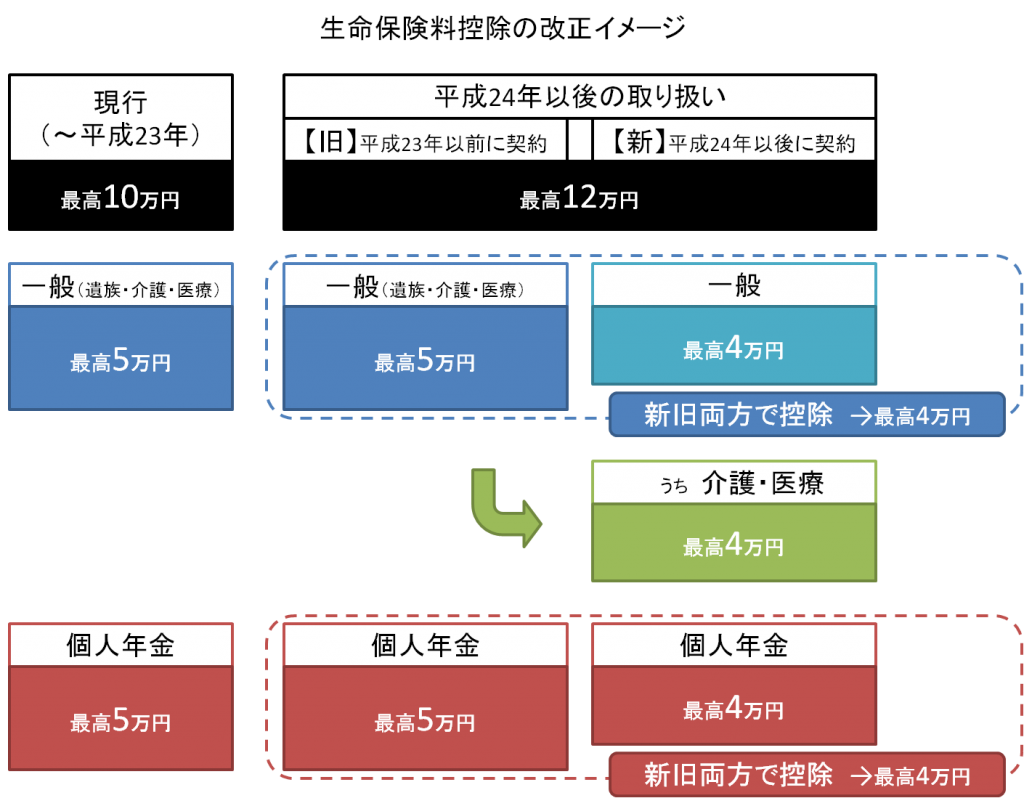 保険料控除の合計適用限度額は、現行10万円から12 万円に拡大していますが、逆に、新契約に係る